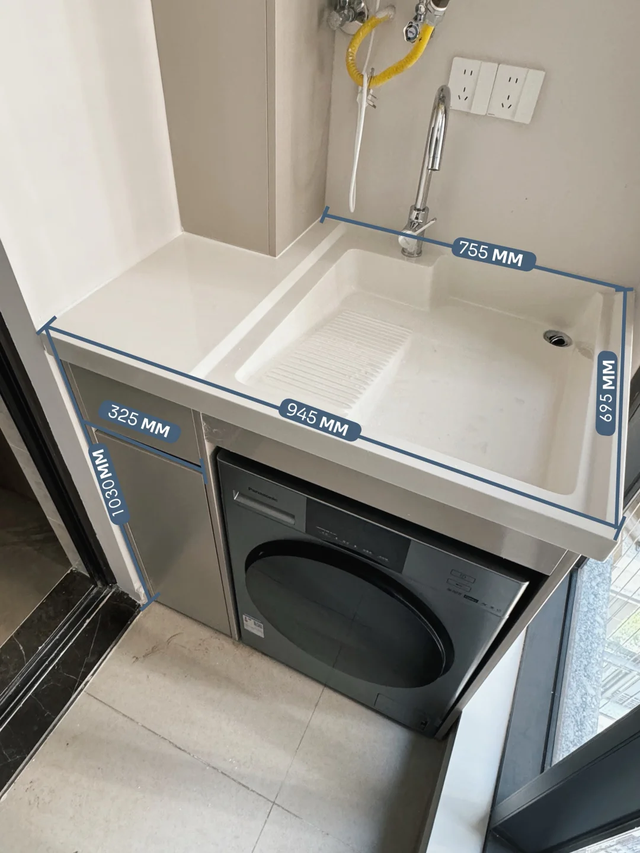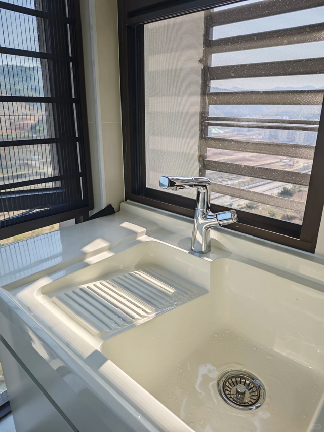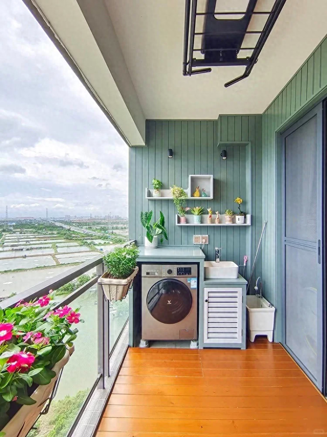 在阳台装个洗衣池,洗拖把、刷鞋子、手洗小件衣物站着就能洗,不用弯腰,都特别方便。不用的时候还能当置物台,绝对实用!