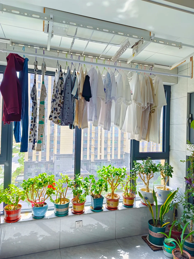 不管是传统的固定晾衣杆,还是现在流行的升降式晾衣架,阳台没有晾衣设备简直寸步难行。尤其是家里有小孩的,每天要洗的衣服特别多。