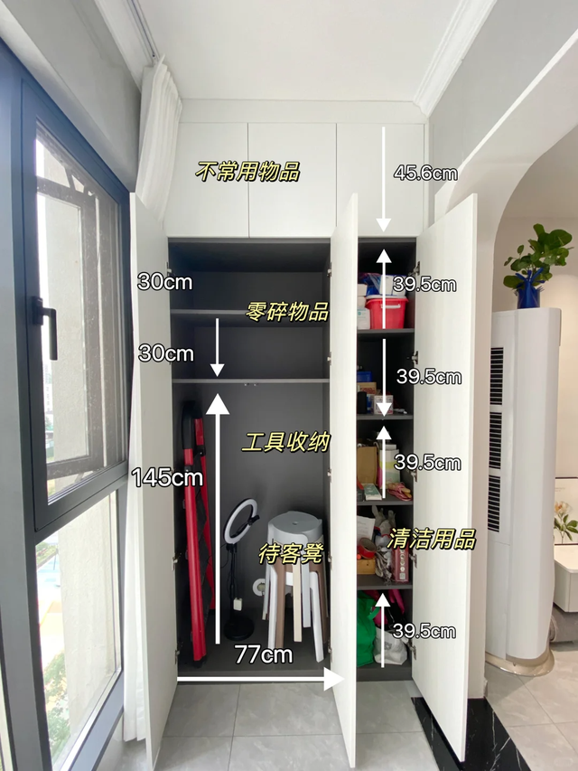 阳台一定要做储物柜!收纳清洁工具、洗衣用品、杂物,柜门一关整整齐齐,再也不会显得乱七八糟。