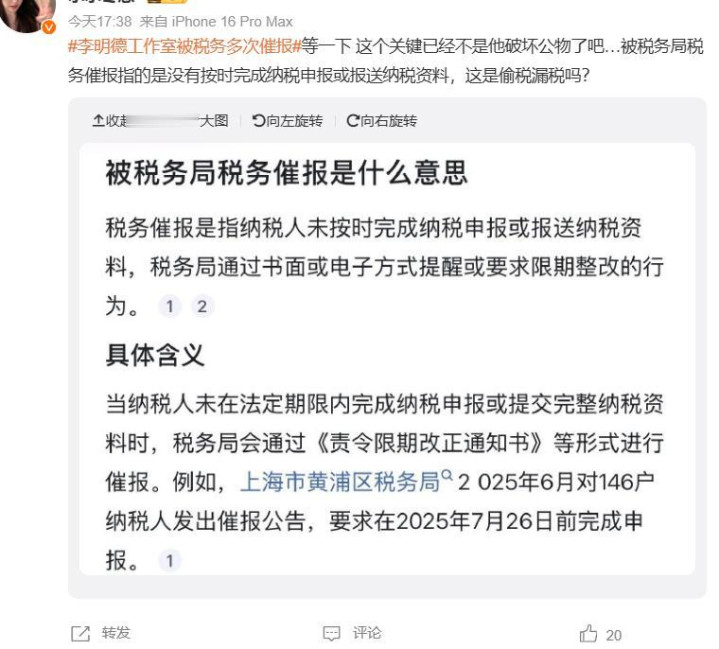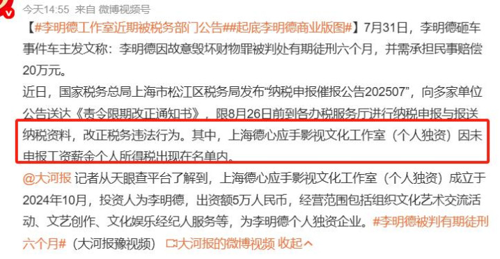 李明德事件还引发了连锁反应,还被曝光涉嫌税务违法行为。