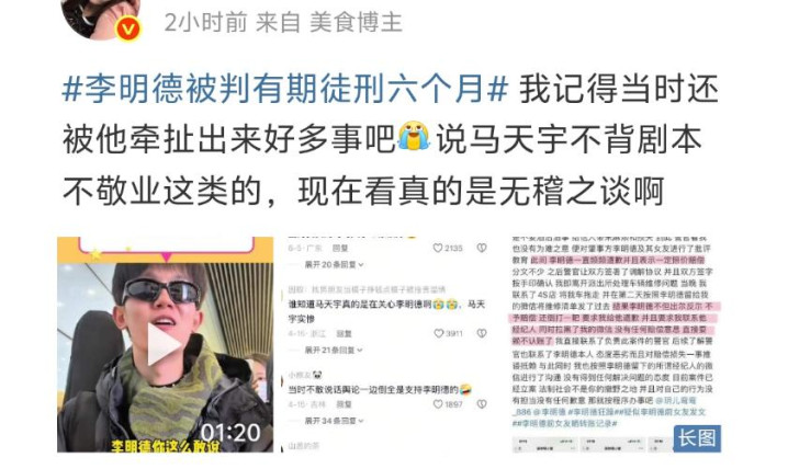 当时李明德在网络上不断爆料马天宇在剧组的耍大牌事件,不断冲击热搜榜,马天宇发文为自己澄清,很多网友依然持保留态度。